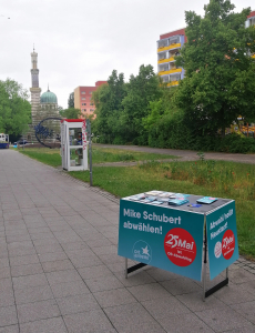 Wir bedanken uns noch einmal bei allen Unterstützer*innen, die beim Plakatieren, Flyerverteilen und an den Infoständen für einen Erfolg des Bürgerentscheides über die Abwahl des Oberbürgermeisters Mike Schubert mitgeholfen haben.
